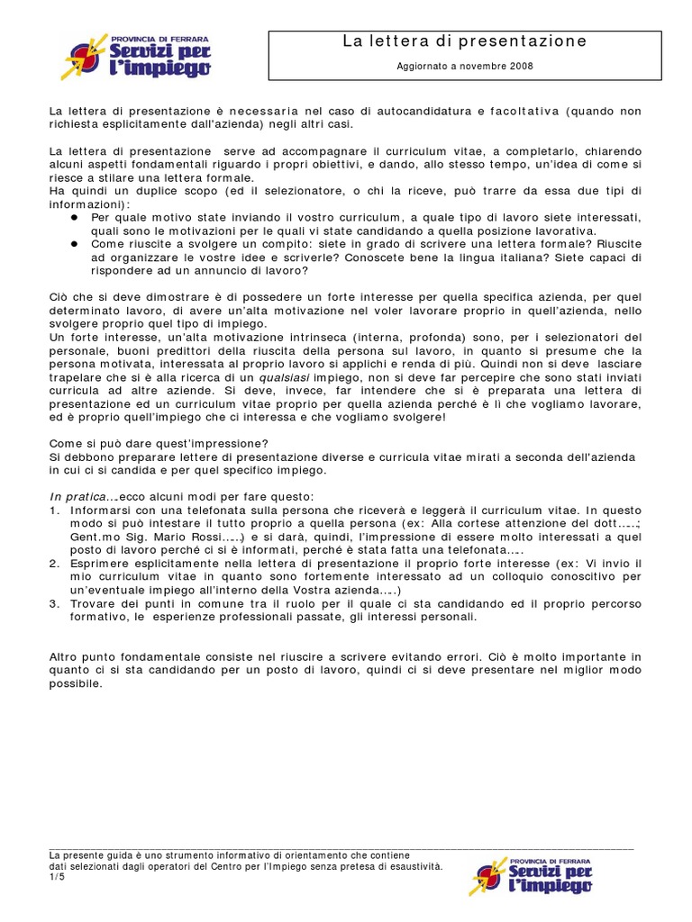 44 esempio di lettera di presentazione autocandidatura