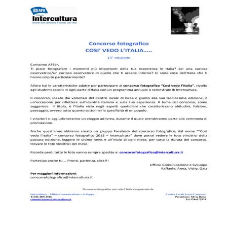 Lettera alla famiglia ospitante intercultura. 5. Lettera alla host family - Diario di un' exchange student Dec 8, 2017 ... E' il momento decisivo, in cui sulla base di questa, la vostra famiglia vi sceglierà, quindi si vuole fare anche una buona impressione. Non ... Intervista alla mia famiglia ospitante - Storie - Intercultura Sono Eleonora, sto vivendo una esperienza bellissima, che reputo molto importante anche per il mio futuro, in Portogallo con AFS. 20* LETTERA ALLA HOST FAMILY - Chiara Tenace Feb 5, 2017 ... Ho sempre sognato aprire un blog ed eccolo qui, spero che vi piaccia e che vi possa essere utile. Inoltre sono anche un Exchange student e in ... Lettera da una famiglia ospitante… - intercultura-ivrea.org Naturalmente è partita e ancora prima del suo rientro già ci tempestava di frasi del tipo ma perché non ospitiamo anche noi al mio ritorno? Se ho potuto fare ...