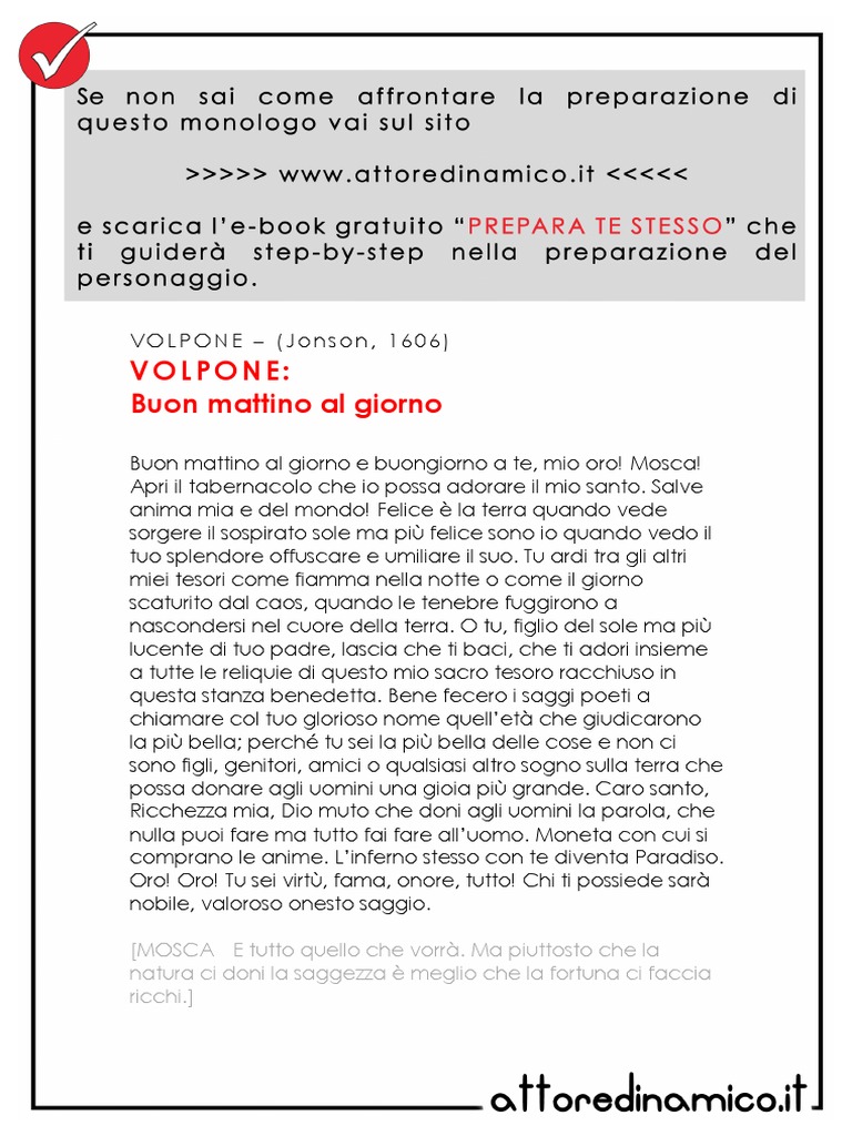 Lettera D-Amore Di Karl Valentin - Dal TINGELTANGEL - Monologo Ricchezza mia, Dio muto che doni agli uomini la parola, che nulla puoi fare ma tutto fai fare all'uomo. Moneta con cui si comprano le anime. L'inferno stesso con te diventa Paradiso. Oro! Oro! Tu sei virtù, fama, onore, tutto! Chi ti possiede sarà nobile, valoroso onesto saggio. [MOSCA E tutto quello che vorrà. Ma piuttosto che la